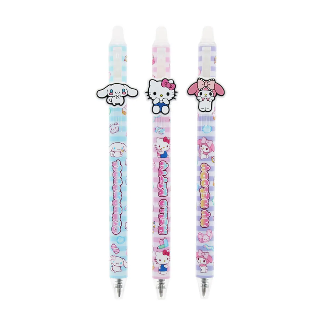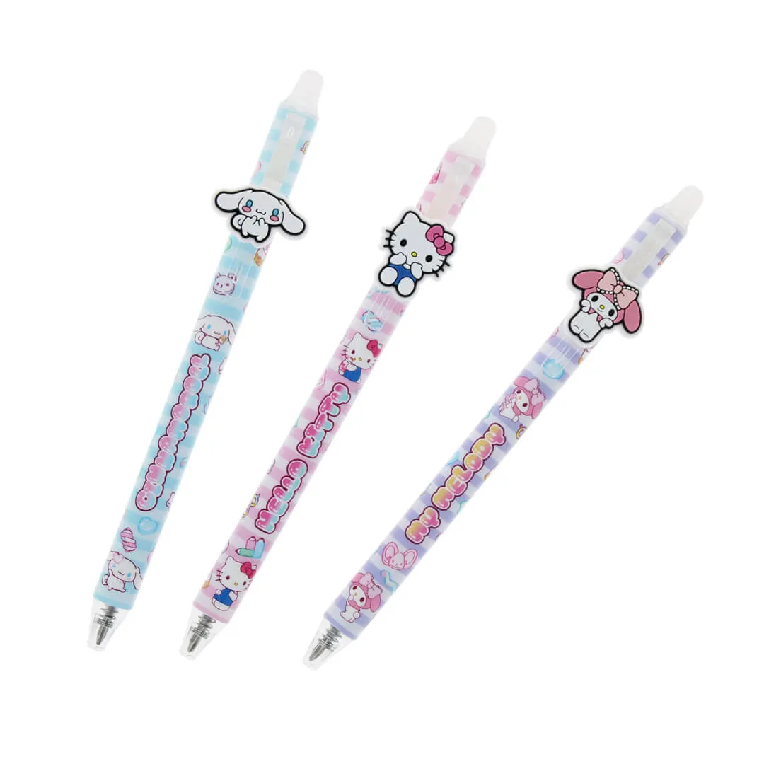Add a pop of pastel cuteness to your pencil case with these Hello Kitty & Friends erasable gel pens. Each pen features soft candy-coloured artwork and a 3D character clip, making everyday notes, homework, or journalling feel extra special. Made with erasable gel ink, you can write, fix little mistakes, and keep everything looking neat and tidy.