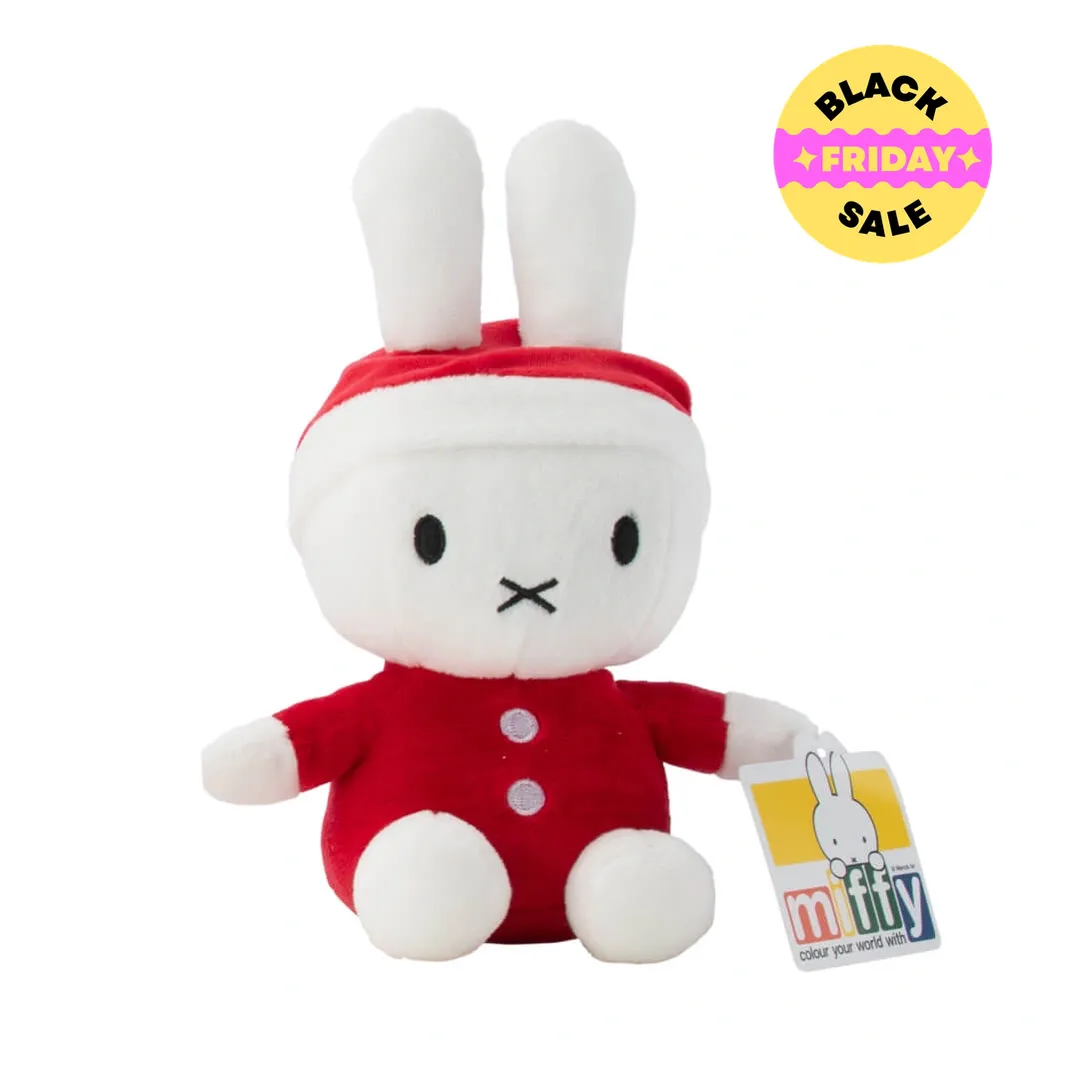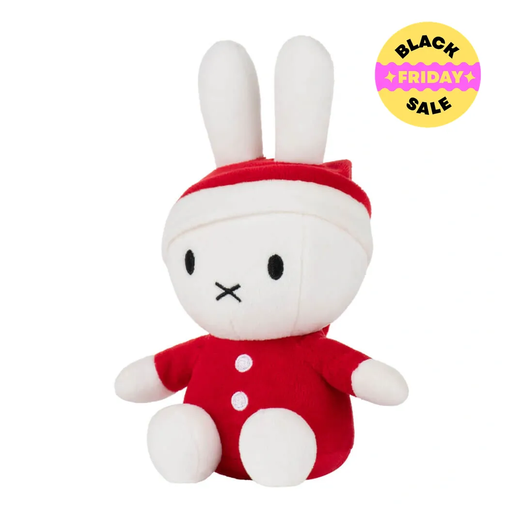 Celebrate the cosiest time of year with this adorable Miffy Christmas plush. Dressed in a rich red velour Santa outfit and matching hat, Miffy is ready to hop straight under the tree or onto your holiday display. Her snowy white fur and soft, squishy body make her perfect for Christmas cuddles.