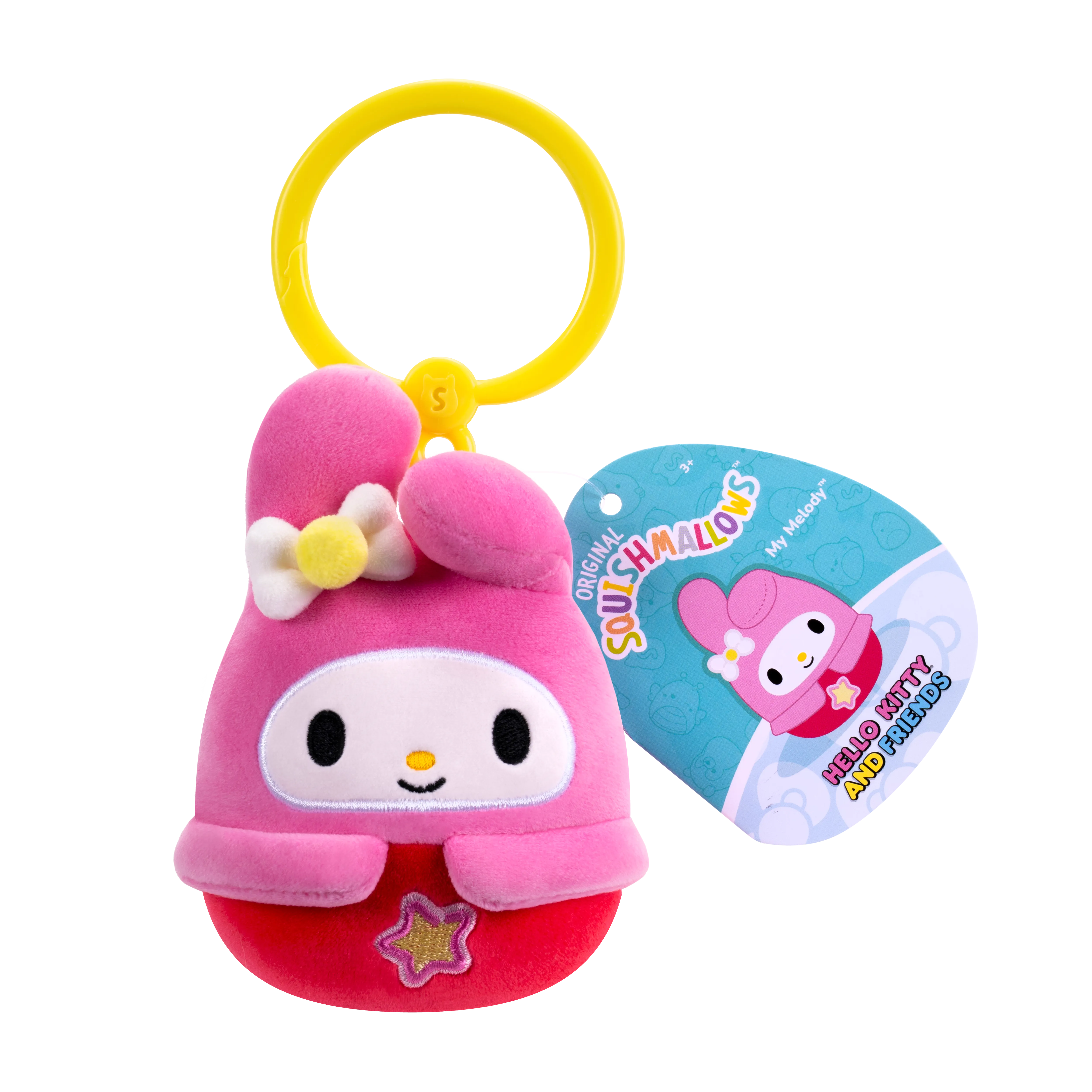Take your fave Sanrio besties everywhere you go with these super soft Squishmallows 3.5" bag clips. Each mini plush is dressed in a colourful outfit with embroidered details and an easy clip that pops onto bags, keys, lanyards or backpacks in seconds.